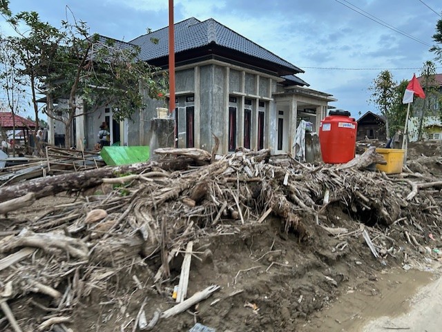 この地域はアチェ地方の中央を走るバリサン山脈北東の低地平野に位置し、山脈から流れる河川に隣接していることが災いし、山から大量の流木と土が流れ込み、文字通り村一帯が洪水に飲み込まれた。