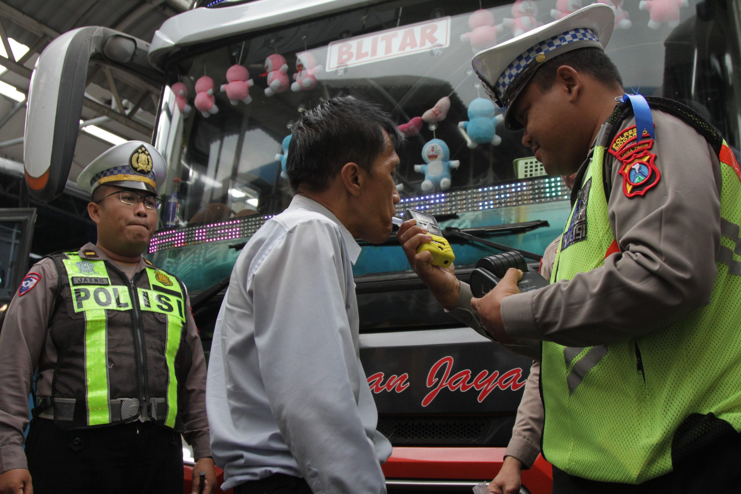 東ジャワ州シドアルジョ県ブングラシのプルバヤ・ターミナルで2日、「スメル交通安全作戦2026」が行われ、バス運転手がアルコール検査を受けた。市警察が国家警察や国軍、運輸局、地方警備隊などと協力し、事故発生防止のため2~15日まで250人態勢で実施する。