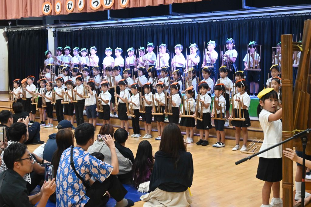 発表会の締めくくりには、年長全員によるアンクルン演奏「YUME日和」が披露された。ぞう組の佐藤樹一さんは「みんなの前でドキドキしたけれど、上手にできた」とコメントした。終了後、保護者からは「子どもたちがこの日のため一生懸命頑張ったことがとても伝わった」と成長を喜ぶ声が聞かれた。