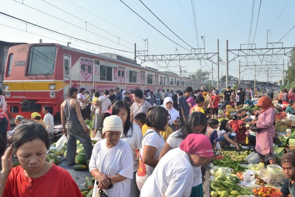 時には暴動にまで発展したともあり、冷房が設置されていない通勤電車に限り、行商の乗車が黙認されていたが、13年7月25日、ジャカルタ首都圏で電車の全冷房化が達成されたことに伴い、行商の鉄道利用は全面禁止となった。非冷房車の廃止はゲリラ的に行われたことから、この日、始発駅では軍に制止された人々が、駅の改札前で立ち尽くしていた。