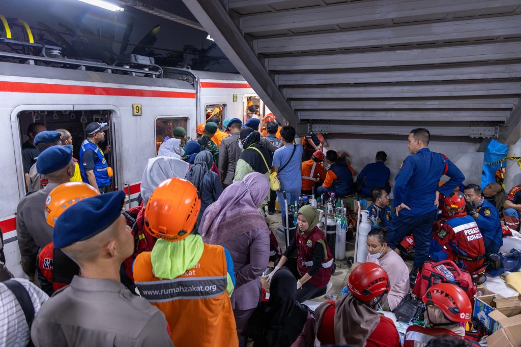 現場では救助隊が大きく変形した車両を切断するなどして、車内に閉じ込められた乗客の救出を28日朝まで続けた。KAIは東ブカシ駅に緊急対応本部と情報窓口を設け、家族からの問い合わせに対応している。