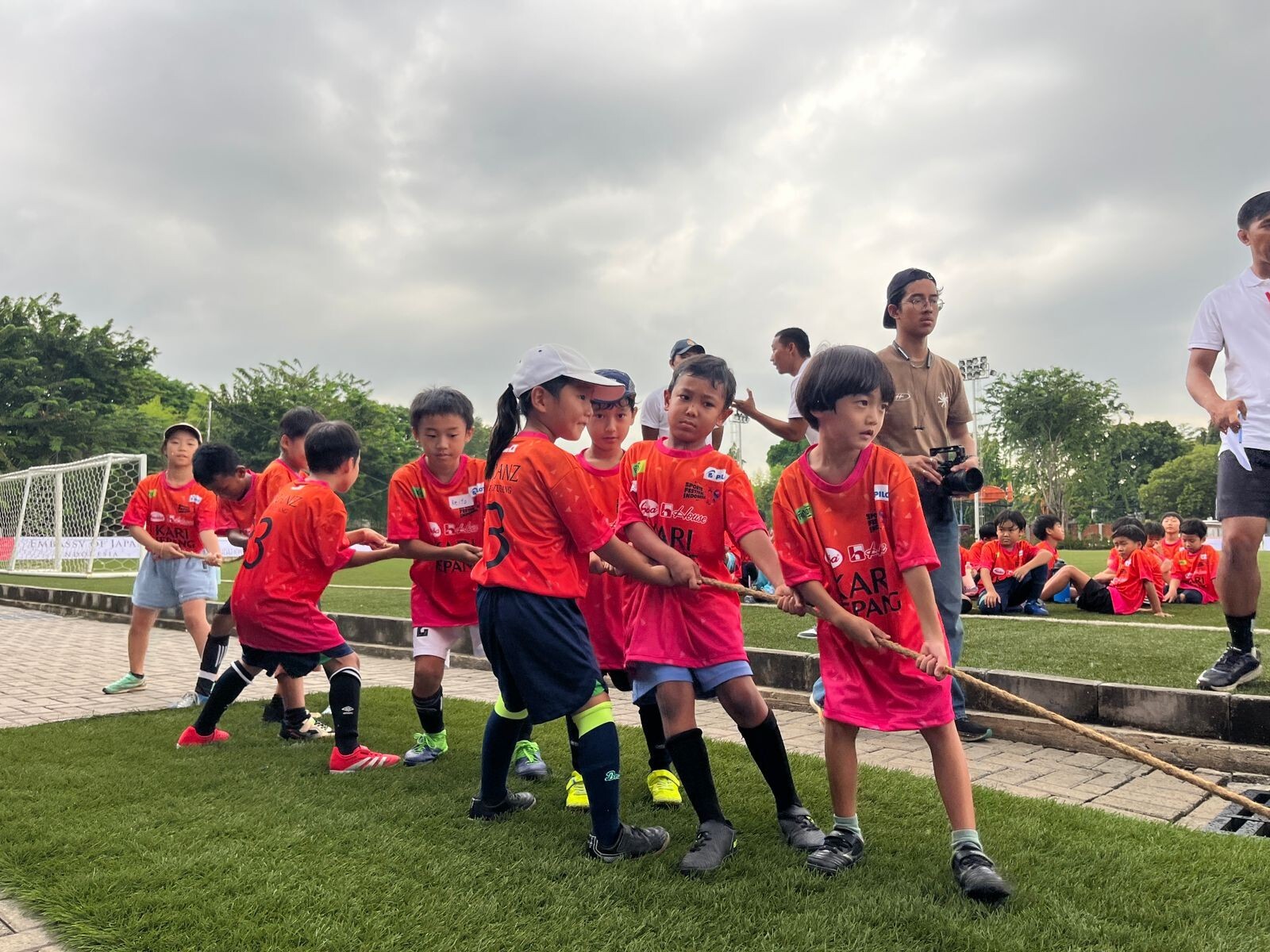 日本人65人、インドネシア人100人の計165人の子供たちによる日イ混合の21チームが6人7脚、綱引き、大玉転がし、ミニサッカーの4種目を通して交流した。体を動かすことに気持ちが高揚した日イの子供たちは雨天でも元気いっぱいに各種目に挑んだ。
