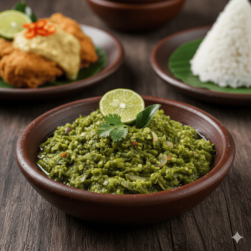 「緑のサンバル」を意味するサンバルイジョ。つづりとしては「Sambal Ijo「Hijo」「Hijau」などを見かけますが、ここでは恐らく最もよく見かけるであろう表記の「サンバルイジョ(Sambal Ijo)」と書きますね。