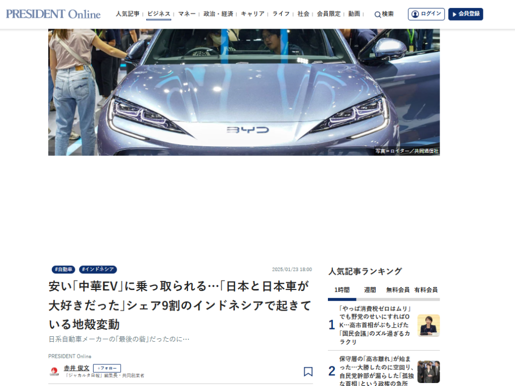 ✎安い「中華EV」に乗っ取られる…「日本と日本車が大好きだった」シェア9割のインドネシアで起きている地殻変動