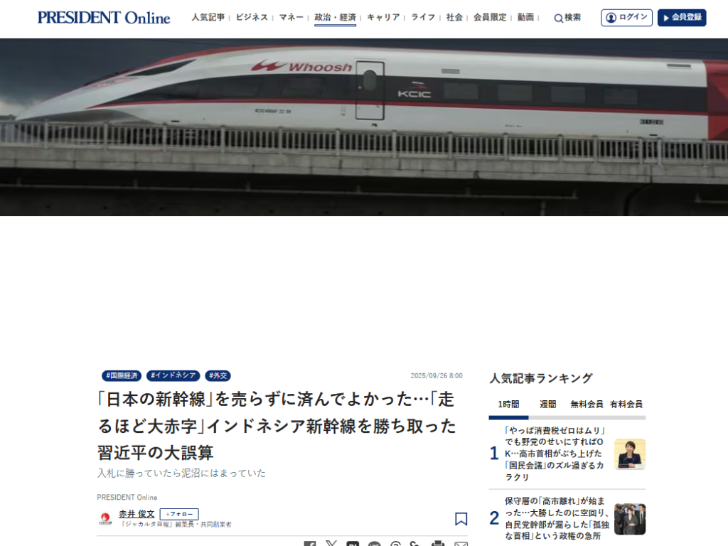 ✎「日本の新幹線」を売らずによかった…「貸した金が返ってこない」習近平がハマったインドネシア新幹線の泥沼