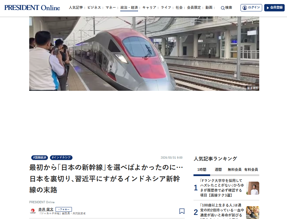 ✎最初から「日本の新幹線」を選べばよかったのに…日本を裏切り、習近平にすがるインドネシア新幹線の末路